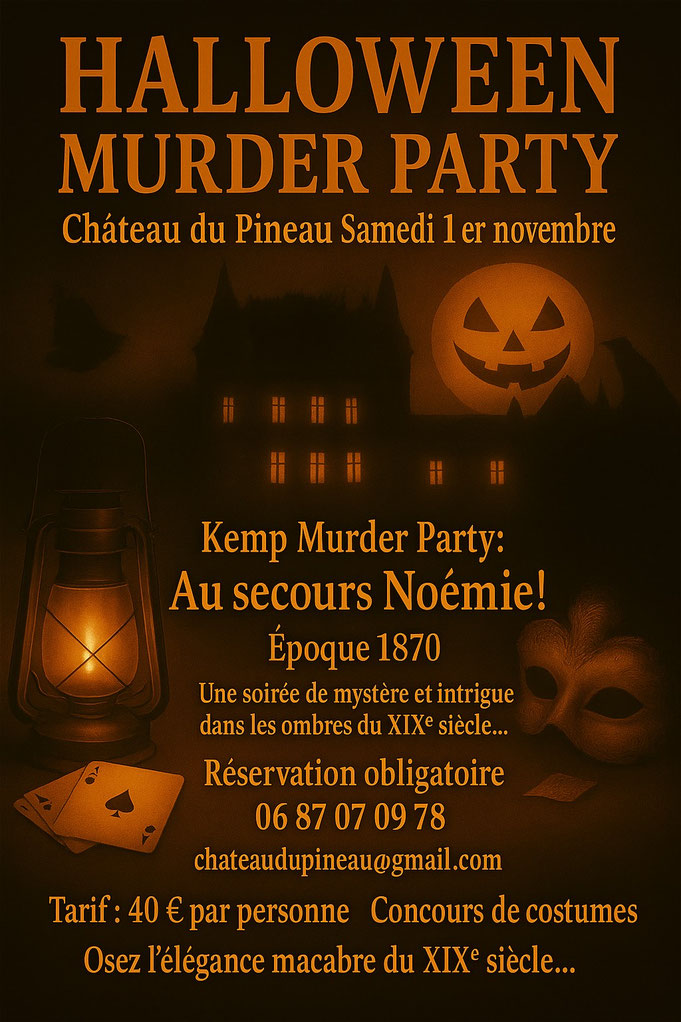 Ce samedi 1er Novembre 2025, vous serez embarqués en 1870! Le fantôme de Noémie n'est, peut -être, pas loin...mais qui a assassiné cette jeune femme ? Pourquoi parle t'on de la malédiction du Pineau si l'on ne retrouve pas son meurtrier ? Soyez prudents...