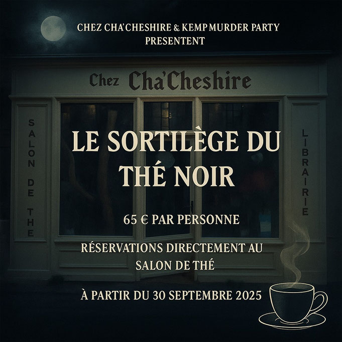 Une enquête de 2H0 vous attend au "Cha Cheshire" place Saint -Michel Le Mans. "Le sortilège du thé noir" ®.